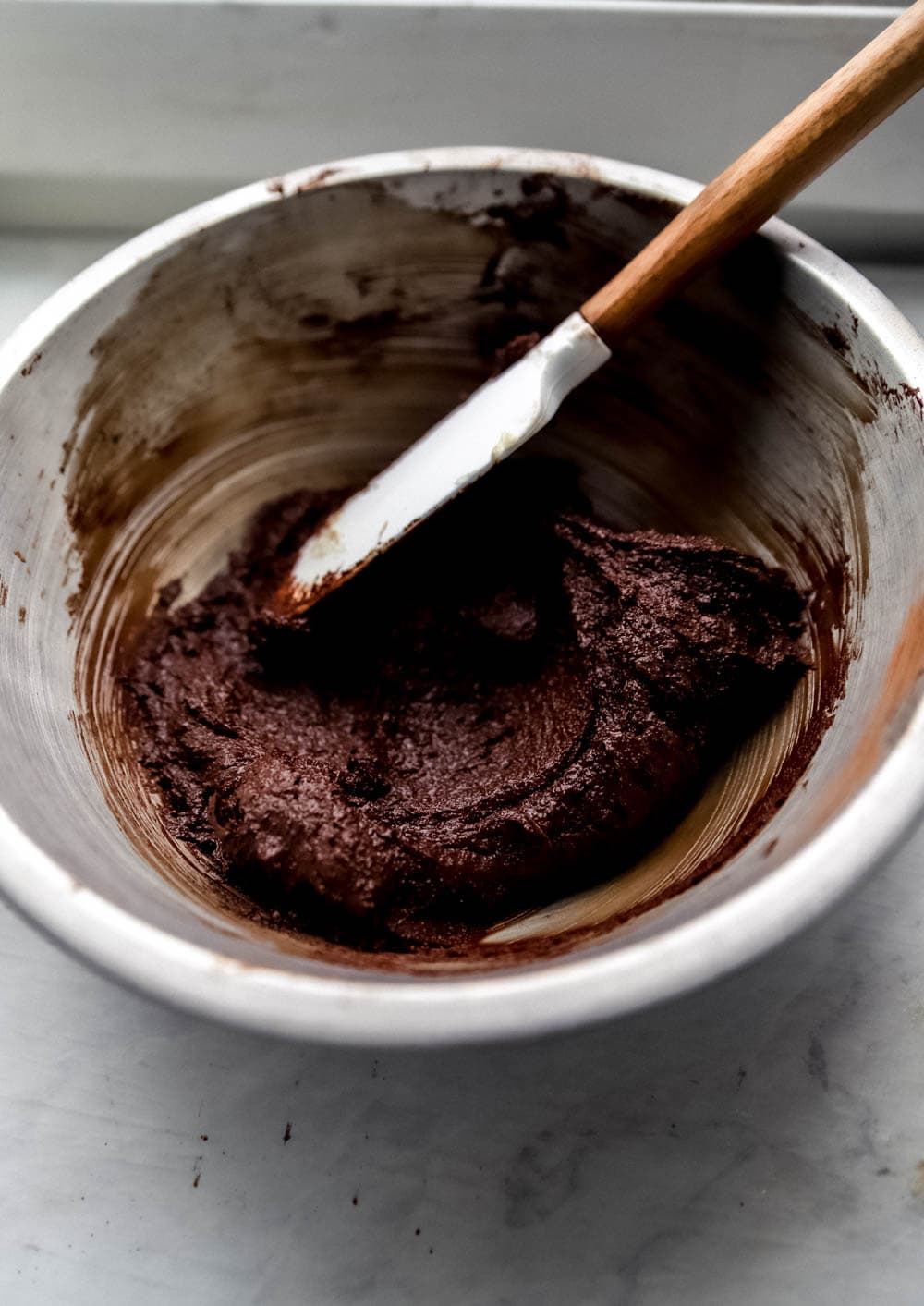 Meanwhile, make the filling. In a medium size bowl, add the softened butter, cocoa powder, brown sugar, salt Nutella. Use a spoon to combine until the mixture is totally smooth, with no lumps remaining. Set aside.